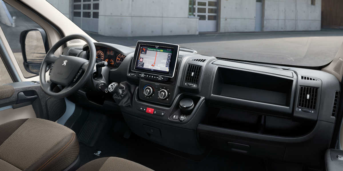 Mit dem Antrieb verändert sich beim e-Boxer zu guter Letzt auch der Innenraum. Der gewohnte Schalthebel fällt weg. Als Ersatz finden sich rechts neben dem konventionellen Kombiinstrument drei Knöpfe; sie dienen der Auswahl der Fahrmodi. Wie viel Energie noch in der Batterie steckt und wie viel Kraft der E-Antrieb gerade entfaltet, zeigt der e-Boxer gut sichtbar im großen Innenspiegel. Auch sonst ist das e-LCV bereits ab Werk topp ausgestattet – das treibt aber leider den Preis in die Höhe, auf 57.990 Euro exklusive Mehrwertsteuer.