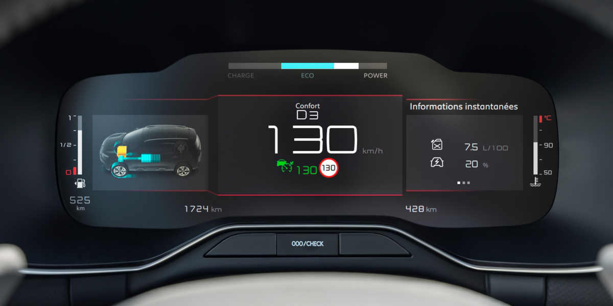 Die neuartige Hybridtechnologie reduziert die CO2-Emissionen um 15 Prozent im Vergleich zum benzinbetriebenen Motor und um fast 12 Prozent im Vergleich zum Diesel. Auch an Kraftstoff kann gespart werden: Im Vergleich zum PureTech 130 EAT8-Benzinmotor verbraucht der Hybrid durchschnittlich 1 Liter/100 km weniger – im Stadtverkehr sind es sogar fast 30 Prozent.