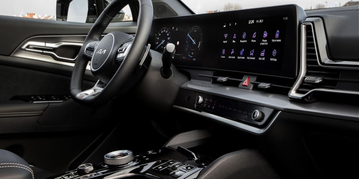 Im Innenraum geht es mit einem gewölbten Panoramadisplay weiter. Das Navigationssystem beinhaltet die Online-Dienste Kia Connect, die Echtzeitinformationen und App-gesteuerte Fernbedienungsfunktionen bieten. Hinzu kommen Karten- und Software-Updates “Over the Air”.