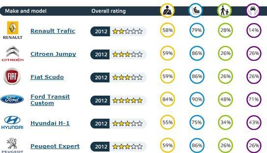 NCAP Crashtest 2012: Nur der Ford Transit Custom überzeugt