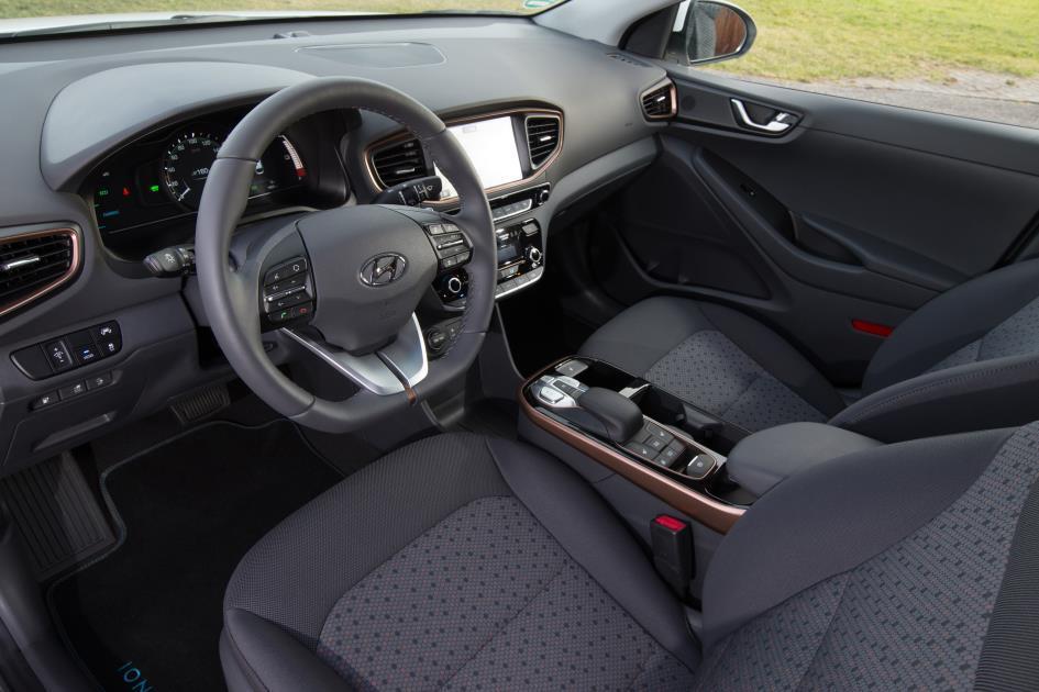 Hyundais Ingenieure haben beim Bau des Ioniq penibel darauf geachtet, dass die zusätzlichen Bauteil des Elektromotors, insbesondere der Akku, möglichst platzsparend verbaut werden. Das Platz- und Stauraumangebot sollte nicht leiden, so das Ansinnen – eines, das beim Kofferraum erfolgreich umgesetzt werden konnte. Großzügige 350 bis 1.410 Liter misst der Stauraum, deutlich mehr als etwa der des zwanzig Zentimeter kürzeren e-Golf (341 bis 1.231). Die Nutzbarkeit des Volumens wird in der Praxis aber von der schrägen Heckscheibe und der 75 Zentimeter hohen Ladekante eingeschränkt. Beschränkt ist auch das Platzangebot im Fond – über einer Körpergröße von 1,80 Metern wird es für Beine und Köpfe eng. Dafür sitzt man vorne selbst mit über 3,990 Metern höchst bequem. Wenn die Fahrwerksabstimmung und die Sitze einen Hauch komfortabler ausfielen, würden wir uns allerdings nicht beklagen.