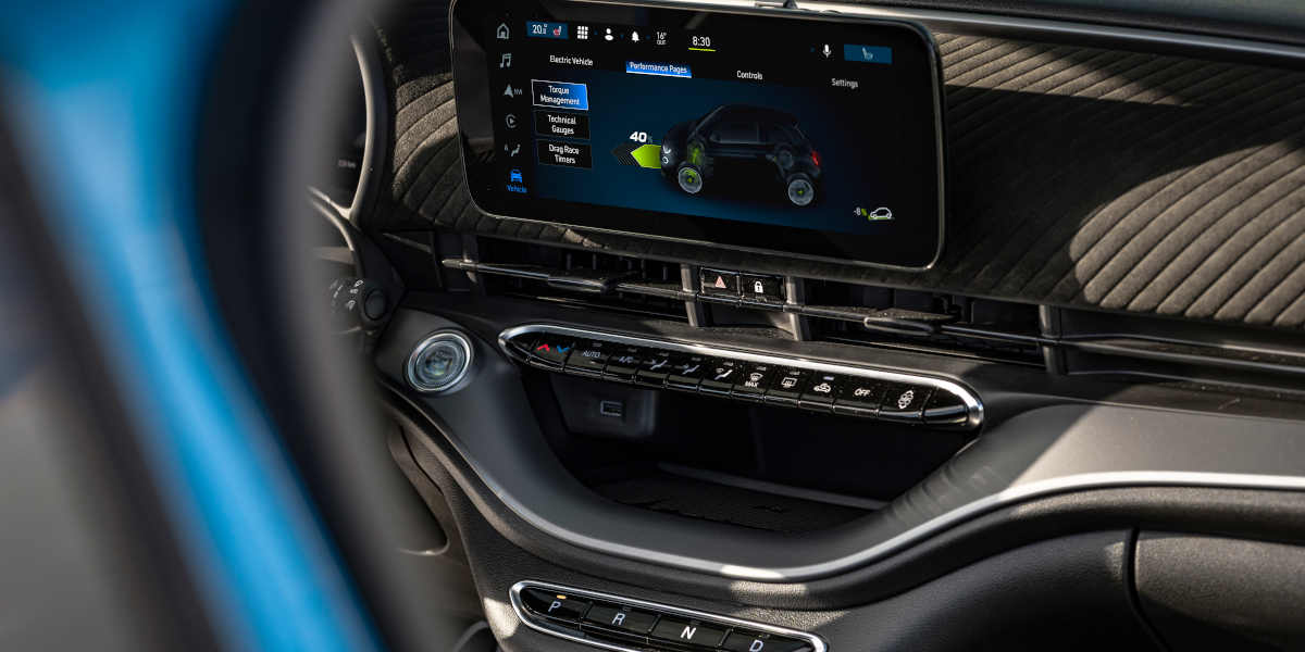 Wer will kann den Abarth jedoch auch kompromisslos in die Kurve werfen. Der Schwerpunkt des E-Abarth-Cabrios liegt dank der Batterie deutlich tiefer als der des Abarth 595C; die Spur ist vorne wie hinten dank der neuen E-Plattform zumal merklich breiter. Mit anderen Worten: Das Abarth 500e Cabrio klebt auf der Straße. Die Arbeitsweise der E-Maschine können wir im Nu der Fahrweise anpassen. Die drei Fahrmodi “Turismo”, “Street” und “Track” regulieren sowohl die Motor- wie die Generator-Leistung: sprich den Antritt wie die Rekuperation.