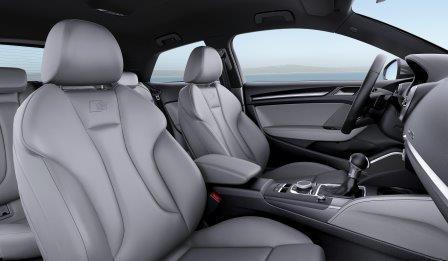 Wer mit den Online-Diensten weniger anfangen kann, der wird sich über die handfesteren Neuerungen freuen: Die Massagefunktion für den Sport-Fahrersitz z.B. (1.005 Euro), das beheizbare Lederfunktions-Lenkrad (170 Euro) oder die Musikanlage von Bang & Olufsen (790 Euro). Beim Durchstöbern des umfangreichen Sonderausstattungskatalogs fällt auf, dass die bisherigen Ausstattungslinien „Attraction“, „Ambition“ und „Ambiente“ drei neuen gewichen sind. Aus ist es also mit der Audi A3 Alliteration im Ausstattungskatalog. Die Linien heißen jetzt „A3„, „sport“ und „desgin„. Die „sport“-Ausstattung gibt sich sportlicher als die Basislinie „A3“ und kommt ab Werk u.a. mit Sportsitzen, 17-Zoll-Alufelgen im 5-Arm-Design, einem Multifunktions-Sportlederlenkrad und einem Sportfahrwerk samt „Audi-Drive-Select“-Fahrwerkseinstellung daher. Der Aufpreis beträgt 1.900 Euro, gleich viel übrigens wie für die „design“-Linie, die sich – nomen est omen – mehr auf die Optik konzentriert.