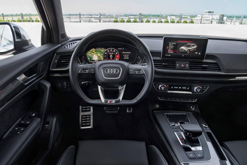 In Bezug auf die Fahrsicherheit hätte der Audi SQ5 keine weitere Unterstützung nötig gehabt. Die ausgezeichnete Bremsanlage und die gutmütige Straßenlage sind im Grunde alles, was es braucht. Andererseits: Bei einem fast 4,7 Meter langen, 1.945 Kilo schweren Schiff das 550 Kilo zuladen und maximal 2,4 Tonnen ziehen darf, ist jede Hilfe willkommen. Insofern ist es erfreulich, dass für den sportlichen Q5-Ableger die gesamte Audi-Assistenzsystem-Palette greifbar ist: vom Head-up-Display bis zum Querverkehrsassistenten. Das Kuriosum ist ein anderes: Mit dem Modelljahr 2018 werden die traditionellen Ausstattungs-Optionen ersetzt durch ein Angebot bereits fix und fertig produzierter Neuwagen, die verschiedene Konfigurationen abdecken. Eines ist bei all diesen Neuerungen indes beim Alten geblieben. Die Rückkehr in die Kompaktklassen-Tristesse fällt schwer – der Blick auf den Kaufpreis versüßt sie aber.