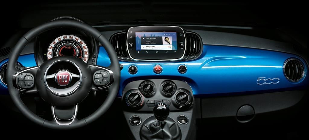 Im 500 Mirror misst der hochauflösende Bildschirm des serienmäßig installierten Multimediasystems „Uconnect Radio“ exakt 7 Zoll, also knapp 18 Zentimeter. Die saubere Touchscreen-Integration feierte ihr Debüt im Cinquecento dabei erst jüngst, bei der Modellpflege 2016. Die vollwertige Smartphone-Integration ist nun die zweite 500er-Multimedia-Premiere, die Fiat gleich mit einem Sondermodell begeht. Bestellt werden kann die Spiegel-Technologie ab sofort auch für die anderen 500er-Modelle. Dort wie hier im Sondermodell holt sie die Smartphone-Anzeige via „Apple CarPlay“ oder „Android Auto“ aufs Uconnect-Display. Die Bedienung erfolgt wie beim Handy durch wischen, antippen und direkte Ansprache – oder mit Hilfe der Multifunktionstasten des serienmäßigen Multifunktions-Lederlenkrads. Damit nicht genug: Dank „Uconnect LIVE“ ist man jederzeit online, dank der Bluetooth-Schnittstelle einfach kabellos verknüpft bzw. jederzeit sprechbereit- und dank Audiostreaming durchwegs bestens unterhalten.