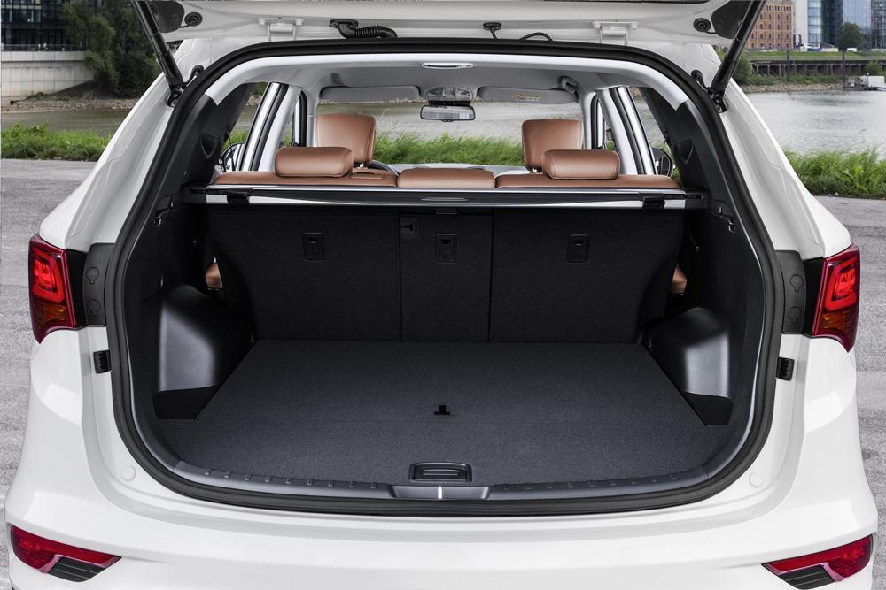 Innen stellt sich die Lage jedoch ein wenig anders dar. Dank frischer Farben und Materialien – und dank einer modifizierten Mittelkonsole wirkt der Santa Fe jetzt sichtbar hochwertiger und aufgeräumter. Und der erweiterte Verstellbereich der Fondsitze verfehlt seine Wirkung ebenfalls nicht, auch wenn es nur 1,5 Zentimeter sind. Das großzügige Platzangebot des 4,70 Meter langen Santa Fe lässt sich nun noch individueller nutzen, allerdings fehlen nach wie vor praktische Ablagen. Die rühmliche Ausnahme ist der Kofferraum. Er bietet Platz für 534 bis 1.680 Liter Gepäck und der dienstbeflissenen Konkurrenz wacker die Stirn. Der neue, 20 Zentimeter kürzere VW Tiguan packt zwar 615 bis 1.655 Liter ein; der zehn Zentimeter längere Kia Sorento schafft aber auch nicht mehr als 660 bis 1.732 Liter. Beim Beladen des Santa Fe stört eigentlich nur die mit 79 Zentimetern ziemlich hohe Ladekante. Unser Kreuz hat jedenfalls keine Freude mit ihr.