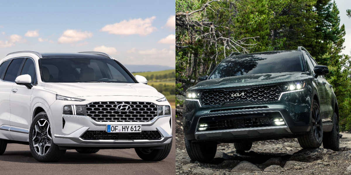 Hyundai Santa Fe (l.) & Kia Sorento | © Bilder: Hyundai, Kia / Collage: MeinAuto.de