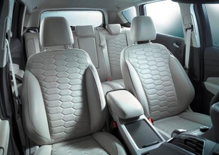 Das ganze steht auf exklusiven 18-Zoll-Leichtmetallfelgen im 10-Speichen-Design; gegen Aufpreis stehen zusätzlich mehrere 19-Zoll-er zur Wahl. Zur Kür stehen darüber hinaus verschiedene Lackierungen, für 675 Euro z.B. die beiden exklusiv dem Vignale-Modell vorbehaltenen Metallic-Lackierungen „Arktis-Weiß“ und „Milano Grigio“. Sie werden nach dem Aushärten zwei Stunden von Hand poliert, damit der Glanz und die speziellen Lichteffekte voll zur Geltung kommen. Bei der Farbe „Milano Grigio“ leuchten sporadisch rosa glänzende Metallic-Töne aus dem generell grau gehaltenen Perleffekt-Hintergrund auf. Mit diversen Ausstattungs-Bündeln (Design-, Licht-, Chrom-Paket, etc.) lässt sich der Kuga Vignale optisch individualisieren. Innen ist das SUV schon von Haus aus sehr fein und edel eingerichtet. Uns haben die wabenförmig gesteppten Leder-Sportsitze am meisten beeindruckt. Sie sind nicht nur in zehn Stufen (Beifahrer sechs) elektrisch einstellbar (samt Memory-Funktion), sondern auch variabel und individuell beheizbar.