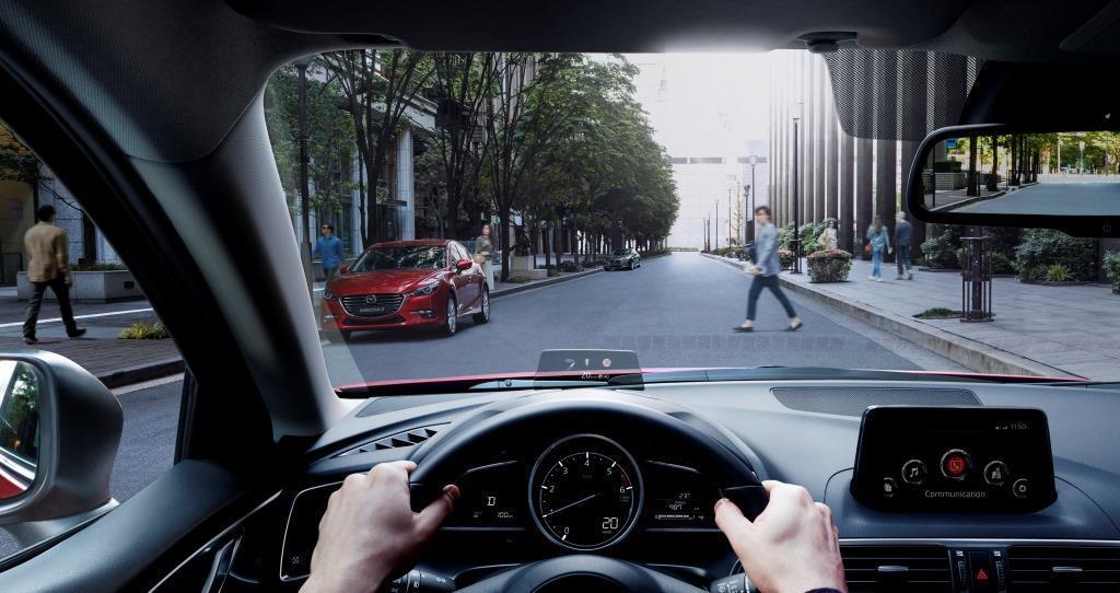 Was hingegen sofort auffällt, ist die Tatsache, dass das Head-up-Display nun die Leidenschaft für große Pixel verloren – und die Freude an der Farbe gefunden hat. Die Darstellung der Fahrinformationen erscheint nun jedenfalls in Farbe; und deutlich schärfer. In den Genuss des Systems kommen allerdings nur Kunden, die sich für die Topausstattung „Sports-Line“ entscheiden. Hier stecken im Fünftürer dann auch ein Bose-Soundsystem, eine Rückfahrkamera, Bi-Xenon-Scheinwerfer mit automatischer Leuchtweiten-Regulierung – und erstmals ein Spurhalteassistent. Ebenfalls erhältlich: Ein Totwinkelwarner und eine Ausparkhilfe sowie ein City-Notbremsassistent, der nun auch auf Fußgänger reagiert. Den verbauen die Japaner bereits in der „Center-Line“, ebenso wie das verbesserte „MZD Connect“-Multimediasystem mit 7-Zoll-Farbdisplay samt Internetradio und Smartphone-Anbindung.