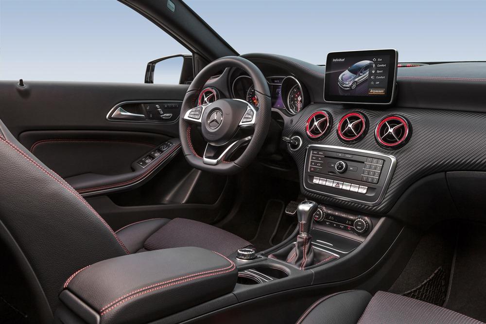 Und was hat sich sonst noch getan? Das Display des Multimedia-Systems misst jetzt 8 anstatt 7-Zoll und ab Anfang nächsten Jahres wird die A-Klasse auch die Datenübertragungs-Standards zur Anbindung externer Multimedia-Geräte, „MirrorLink“ und „Apple Car Play“, beherrschen und die Mercedes me App unterstützen. Unverändert geblieben ist: Die A-Klasse gilt in puncto Raumangebot nicht als Nonplusultra, gerade im Fond und im Heck. Im Kofferraum bringt der Mercedes bspw. 341 bis 1.157 Liter unter, etwas weniger als der 1er BMW (360 bis 1.200) und der A3 Sportback (380 bis 1.220 Liter). Der 7er-Golf von VW schafft 380 bis 1.270 Liter.