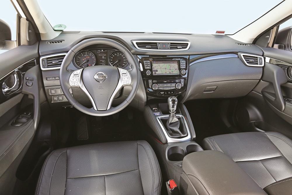 Die bessere Wahl sind für uns trotzdem die beiden stärkeren Motorvarianten, im Falle der Benziner der 1.6 DIG-T mit 163 PS und 240 Nm Topdrehmoment; und im Falle der Diesel der 1.6 dCi mit 130 PS und 320 Nm. Beide bringen – für jeweils rund 2.000 Euro Aufpreis – den Qashqai spürbar flotter in Schwung und verbrauchen in der Praxis kaum mehr Treibstoff, sofern sie nicht mit der Automatik oder gar dem Allradantrieb (nur für den stärksten Diesel erhältlich) gekoppelt werden; so nämlich pendelt sich der Testverbrauch bei rund 8 respektive 6 Litern ein. Das gesparte Geld lässt sich dann etwa in das „Safety Shield“-Sicherheitspaket investieren. Für 700 Euro Aufpreis bietet es Spurhalte-, Notbrems- und Fernlichtassistenten sowie Totewinkel- und Einparkhelfer samt Kamera; allerdings bleibt es nur der Tekna-Linie vorbehalten.