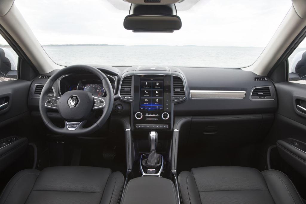 Trotz der identischen technischen Basis unterscheidet sich der Koleos räumlich vom X-Trail. Besonders groß fällt der Unterschied im Heck aus. Das gleichlange Nissan-SUV packt 550 bis 1.982 Liter in den Kofferraum, d.h. fast so viel wie der Kodiaq (650-2.065 Liter). In den des Renaults passen hingegen nur 530 bis 1.677 Liter. Wobei das „Nur“ relativ zu sehen ist. Der deutlich längere VW Touareg z.B. verstaut 697 bis 1.642 Liter – klein ist der Kofferraum des Koleos also nicht. Dennoch scheinen die Franzosen auf Nummer sicher gegangen zu sein. Bei der Ausstattung jedenfalls lassen sie sich nicht lumpen. Im Koleos wehen einem schon in der Werksausstattung automatisch klimatisierte Winde um die Nase – selbst in dieser Preisklasse beileibe keine Selbstverständlichkeit. Ebenso nicht selbstverständlich ist, dass ein Navi und eine Smartphonekoppelung serienmäßig verbaut werden. Schaltzentrale des „Renault R-LINK 2“-Online-Infotainmentsystems ist in der „Life“-Linie ein zentral positionierter, aufrechter 7-Zoll-Touchscreen. In der nächsthöheren Ausstattung „Intens“ wächst seine Diagonale auf 8,7-Zoll; die Position im Herzen der Mittelkonsole bleibt. In der Topausstattung „Initiale Paris“ wächst schließlich noch das Audio-Ensemble: und zwar um eine edle Bose-Soundanlage mit 12 Lautsprechern.