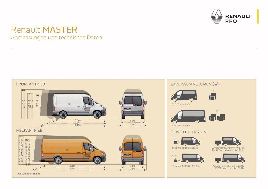 | Technische Daten des Renault Master Normal Kastenwagen: | ||
