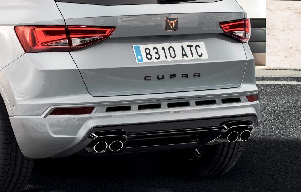 Das „Cup Racing“-Konzept war bei Seat aber stets mehr als Kraft und Dynamik in Rennsportmanier. Auch optisch sollte in und um die Cupra-Modelle Rennsport-Feeling aufkommen – eine Idee, der die Spanier mit der eigenständigen „Cupra“-Marke treu bleiben. Der Inbegriff dieser Idee ist das neue kupferfarbene „Cupra“-Logo, das beim Cup-Racing-Ateca stolze mitten im Kühlergrill; und zentral auf der Heckklappe prangt. Die Kraft unter der Haube lässt der in groben Waben verzierte zweiteilige Kühlergrill erahnen – und die vier Auspuffrohre, die aus dem Heckdiffusor ragen. Auch die vier 19-Zoll-Leichtmetallfelgen im Rautendesign machen gleichermaßen Eindruck wie der Gag mit dem Begrüßungslicht, das das Logo und das Wort „Cupra“ auf den Boden wirft: vor allem nachts ein Blickfang. Die sechs zur Wahl stehenden Außenfarben kommen hingegen bei Tageslicht am besten zur Geltung. All diese Extras packt Seat in die Serienausstattung.