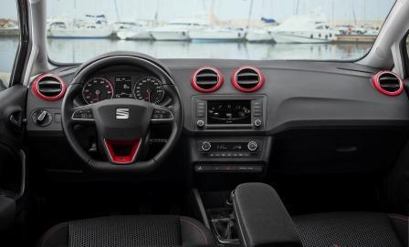 Im Innenraum gibt sich der gerade aufgefrischte Ibiza mit seinem rundum aufgewerteten Interieur indessen keine Blöße. In der „FR“-Linie kommen zahlreiche Extras dazu, unter anderem eine gut sitzende Sportbestuhlung, ein Dreispeichen-Lederlenkrad, getönte hintere Seitenscheiben und das neue Media-System „Plus“. Zu ihnen gesellen sich mehrere nützlicher Fahrassistenten – von der Einparkhilfe (per Ultraschall) über den Regensensor und die Müdigkeitserkennung bis hin zum Berganfahrassistent. Sportlich heißt im Ibiza FR also auch sicher.