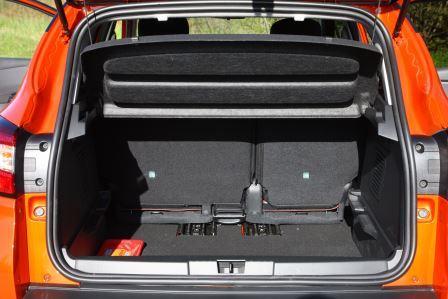 Platz bietet der Captur allerdings spürbar mehr, insbesondere dem Fahrer und seinem Beifahrer. Ein weiterer Vorzug: Die höhere Sitzposition, die sich wegen der sehr weich gepolsterten Bestuhlung auf längeren Strecken jedoch leider nicht in vollen Zügen genießen lässt. Ansonsten aber erweist sich das Mini-SUV innen als Fahrzeug mit vielen praktischen Details. Dazu zählen abzieh- und waschbare Sitzbezüge (in der „Luxe“-Ausstattung) ebenso wie ein stattliches Handschuhfach (mit über 10 Litern Stauraum), viele nützliche Ablagen, eine einfache Bedienung und eine längs verschiebbare Fondbank. Letztere gewährleistet, dass die Passagiere hinten ebenfalls reichlich Platz vorfinden. Und im Heck geizt der Franzose ebenso wenig mit Platz, wie das Stauraumvolumen von 377 (455)/1.235 Liter zeigt. Der ähnlich langer Nissan Juke packt zum Vergleich nur 354 bis 1.189 Liter ein, der zwanzig Zentimeter längere Opel Mokka 356 bis 1.372 Liter.