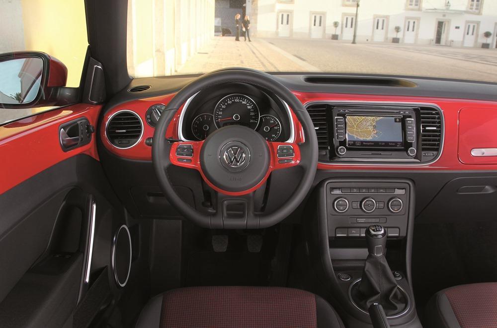 Bei der Überarbeitung sprangen für den Beetle innen also frische Farben und neue Technologien heraus. Unverändert geblieben ist hingegen die Grundkonzeption und Ausgestaltung des Innenraums. Der VW lässt sich wie gewohnt einfach bedienen, er überzeugt mit einer sehr sorgfältigen Verarbeitung, mit bequemen Sitzen und mit viel Platz für Fahrer und Beifahrer. Im Fond hingegen ist es recht eng und für die Köpfe großgewachsener Hinterbänkler sogar bedrückend.