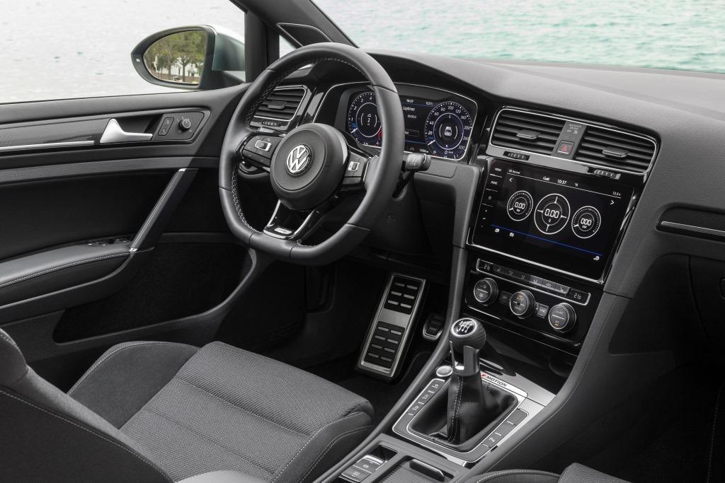In puncto Design und Innenraumgestaltung erscheint der neue Golf R aber wie aus einem Guss. Die frischen Spoiler machen den Auftritt aggressiver, die serienmäßigen LED-Schweinwerfer den Ausblick klarer. Auch innen ist der rassige Golf mit allen erdenklichen Rennsport-Ingredienzien geschmückt: Von den Edelstahlpedalen über die Sportsitze bis zum optionalen „Active Info Display“, das alle wesentlichen Performance-Daten ins Cockpit holt. Mit einer topaktuellen Infotainment-Ausstattung kann der Kompaktsportler ebenso dienen, allerdings erst gegen Aufpreis. Ebenfalls erst gegen Zuzahlung an Bord sind neue Assistenzsysteme wie der Emergency- und der Stau-Assistent, der den Golf R bis Tempo 60 selbsttätig fährt. Das Gefühl, es kaum erwarten zu können, das Steuer wieder übernehmen zu dürfen, ist im Aufpreis inbegriffen.