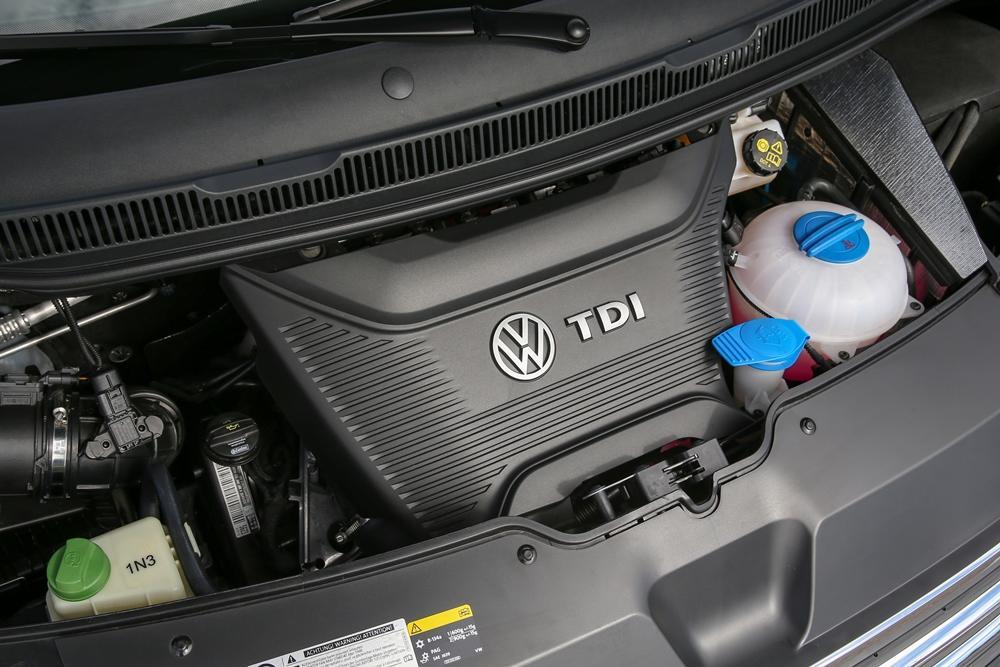 Ausgeführt sind die neuen Dieselaggregate im T6 durchwegs als per Common-Rail-System eingespritzte Vierzylinder-Reihenmotoren mit 1.968 Kubikzentimetern Hubraum. Die Aufladung obliegt einem Turbolader, beim stärksten Diesel sind es zwei. Den Anfang macht ein 2.0 TDI mit 84 PS und 220 Nm Spitzendrehmoment. Eine oberhalb der Kurbelwelle integrierte Ausgleichswelle sorgt bei ihm – wie bei allen anderen Varianten – für viel Ruhe im Familien-Van. So mancher Familie dürfte das Temperament des Basisdiesels aber gar zu ruhig sein. Nur 146 km/h Höchstgeschwindigkeit und eine Standardsprintzeit von mehr als 22 Sekunden – das kann kaum für Entzückung sorgen, auch wenn der NEFZ-Verbrauch gegenüber dem Vorgänger von 7,2 auf 6 Liter gesenkt werden konnte (155 Gramm CO2).